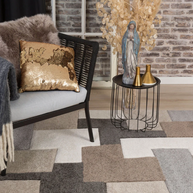 Ngoài ra, so với thảm màu trơn thì thảm trải sàn họa tiết vẫn luôn đem đến hiệu quả trang trí tốt hơn. Kiểu thảm trải sàn họa tiết hình học rất thích hợp để bạn sử dụng khi bộ ghế sofa có màu trơn.