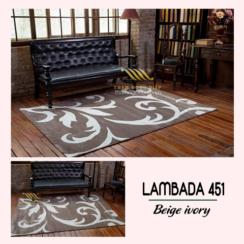Thảm trang trí LAMBADA 451 BEIGE đẹp và cực bền. Là dòng thảm nhập khẩu Đức được phân phối tại Việt Nam bởi thảm Ngọc Diệp. Đây là mẫu thảm đang được quan tâm nhất với nhiều ưu điểm và rất dễ làm sạch.