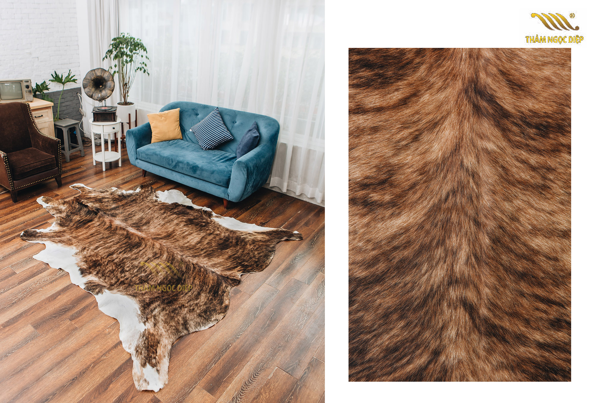 Thảm được làm từ da bò 100%, bằng quy trình sản xuất nghiêm ngặt nên những tấm thảm vẫn giữ được lớp biểu bì của da tự nhiên. Với lớp bề mặt thảm bao gồm những đường vân hoa văn lạ với những lớp lông mỏng được làm đan xen nhau, người sử dụng sẽ cảm thấy dễ chịu và thoải mái khi sử dụng.